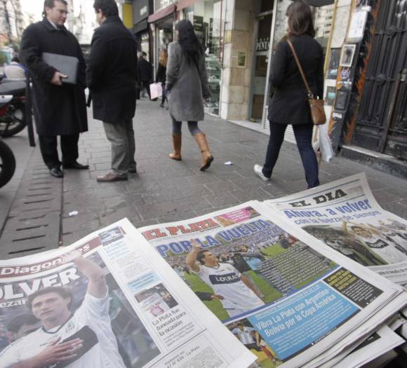 Por ejemplo, las portadas de los diarios locales “El Día”, “Hoy”, “Diagonales” y “La Plata” coincidían en mostrar una foto gigantesca de Barros Schelotto quien, levantando los brazos, muestra la amargura plena en su rostro tras el final del partido.