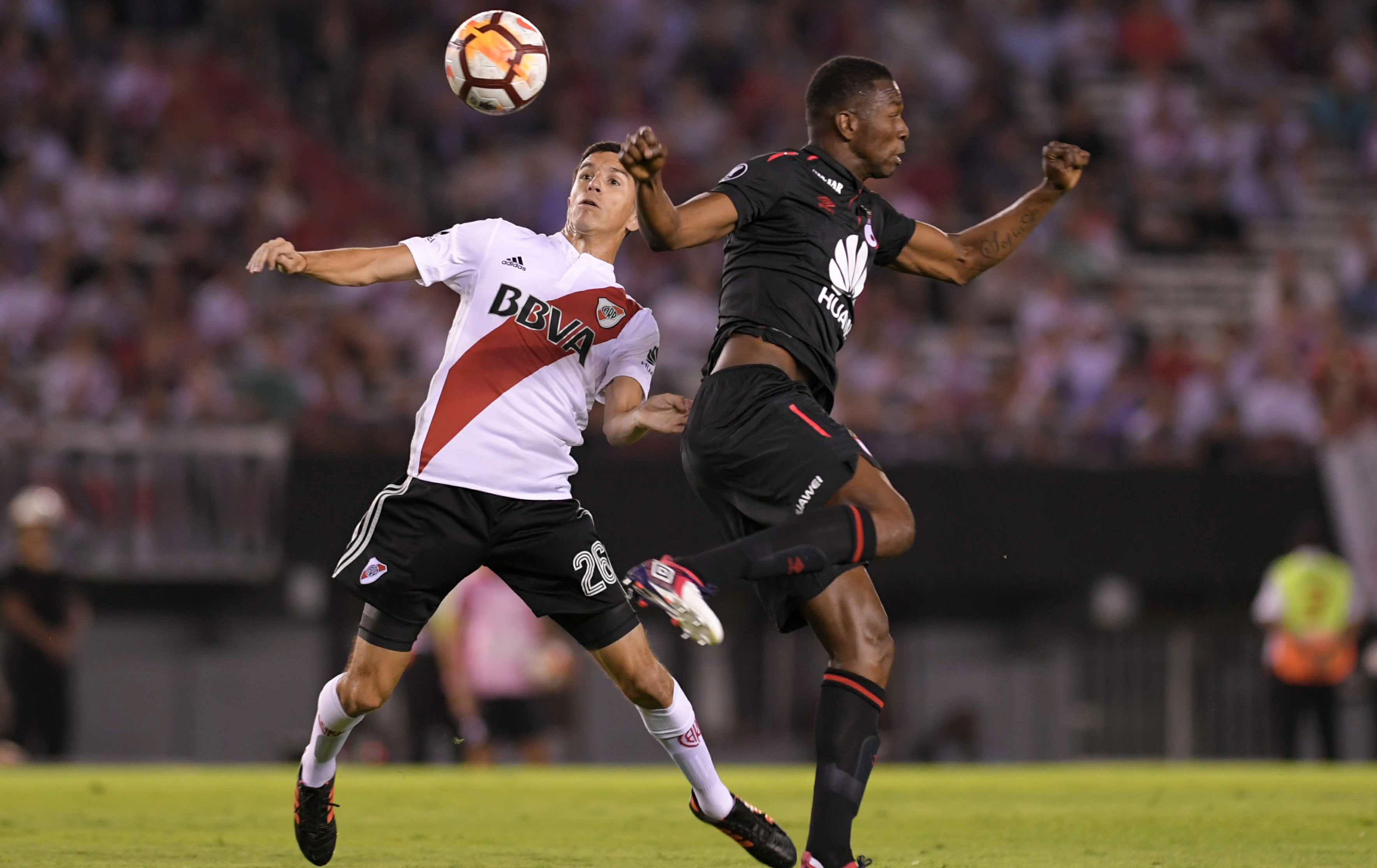 El repliegue inicial del equipo colombiano -que pasó dos instancias para meterse en la fase de grupos- le permitió a River el dominio del balón y el adelanto territorial, pero la falta de movilidad de sus volantes le restó posibilidades ciertas de llegar con riesgo al arco de Robinson Zapata. Con “Nacho” Fernández y “Pity” Martínez por debajo de su nivel, sin abrir la cancha ni soltar a los laterales, con Pratto aislado y Mora sin peso en la generación de juego, River tardó más de media hora en generar aproximaciones. Y la primera fue de pelota parada, un tiro libre de Mora que Zapata, siempre correcto, rechazó sin problemas hacia un costado.