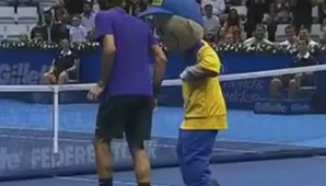 Brasil, 10 de diciembre.- A su manera, el suizo le rindió tributo a Michael Jackson junto a una mascota, durante su exhibición con Jo-Wilfried Tsonga. Mirá el video.