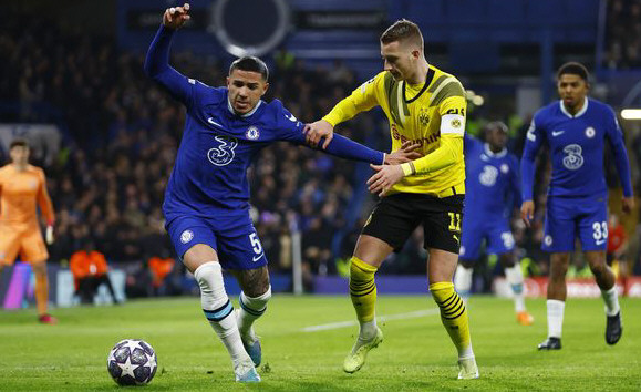 Chelsea de Inglaterra, con el mediocampista campeón del mundo Enzo Fernández (foto) como titular, revirtió ayer la serie ante Borussia Dortmund, de Alemania, con el triunfo 2-0 como local y se clasificó a los cuartos de final de la Liga de Campeones de Europa. El inglés Sterling (PT 43m) y el alemán Havertz (ST 8m, de penal) fueron los goleadores, en Londres, para sellar el pase a cuartos, luego de la derrota 1-0 en la ida. La victoria de Chelsea no estuvo exenta de polémica. El penal a favor se concretó luego de una mano de Wolf en el área, revisada por el VAR, y Havertz falló en su primer intento. El VAR también observó invasión de campo de los jugadores del Dortmund y Havertz tuvo otra chance que no desperdició.