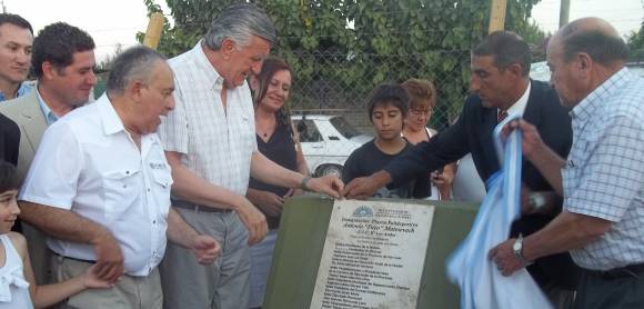Al acto asistió el gobernador José Luis Gioja, amigos y familiares de quien, en vida, fuera uno de los deportistas más destacados de la provincia. “Mi intención es que aquí los niños puedan practicar deportes y que sus instalaciones también sean utilizadas por las distintas manifestaciones culturales de Chimbas”, contó el intendente. En la ocasión se presentó la murga porteña “Los Calaveras” de Constitución. En ese playón prepararán sus números las murgas chimberas para el próximo corso.
