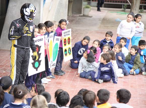 El objetivo del programa “Piloto X” que lleva la categoría por todo el país, es educar a los más pequeños en las leyes principales de tránsito. Ayer fue el turno de la Escuela Clara Rosa Cortínez para recibir la charla, mismo establecimiento que fue visitado antes de ayer, pero en el turno tarde.