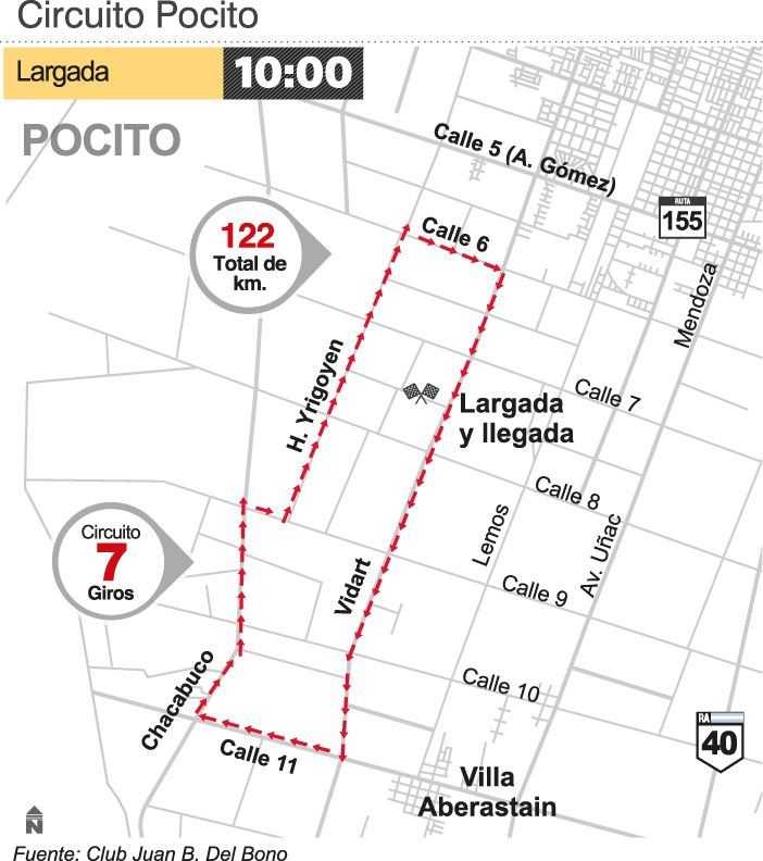 La concentración, en calle Vidart, entre calles 7 y 8, está prevista para las 9:00 y la largada a las 10. Tal cual se anticipó en la edición del miércoles, la prueba se desarrollará por un trazado en el que ya se ha corrido durante la presente temporada. Es casi idéntico al que utilizó el Club Sergio Valdéz, para desarrollar la Doble Cerrillo, con la diferencia que la prueba inicial del calendario se largó desde el centro capitalino y tuvo un giro menos a los siete que se darán hoy.