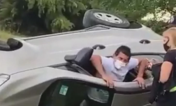 El deportista ingresó a la EcoSports volcada e intentó socorrer a la mujer que se encontraba en el interior. En la filmación se ve al delantero saliendo del vehículo dado vuelta, y si bien no se precisó el estado de salud de la conductora, indicaron que “está fuera de peligro”.