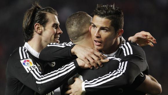 Los goles del conjunto merengue fueron anotados por el francés Karim Benzema y el portugués Cristiano Ronaldo, a los 11 y 24 minutos, ambos de la segunda etapa. Con este resultado, el Real Madrid mantiene la punta, en soledad, con 60 unidades, y en la próxima fecha, en la que mantendrá el liderazgo a pesar de una caída, recibirá en el estadio Santiago Bernabeu al Villarreral del delantero argentino Luciano Vietto. En tanto, la Real Sociedad, con la presencia del arquero argentino Gerónimo Rulli, le ganó hoy a Sevilla, por 4-3, en encuentro del segmento dominical de la fecha 24 de la Liga española de fútbol de la Primera División, que lidera Real Madrid. En el estadio Anoeta, el equipo vasco consumó un victoria agónica por intermedio de Xabi Prieto, quien convirtió el cuarto tanto a los 45m. de la segunda parte. Previamente, los dirigidos por el escocés David Moyes festejaron sus goles a través de Agirretxe, el citado Prieto (de penal) y Alejandro Arribas, en contra de su valla.