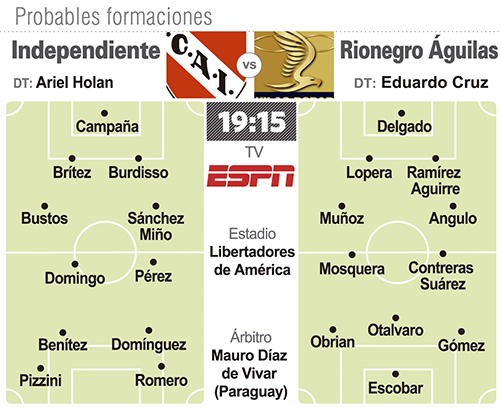 Independiente, con su crisis futbolística a cuestas, irá hoy (19.15 por ESPN) por el pase a los octavos de final de la Copa Sudamericana cuando reciba a Ríonegro Águilas de Colombia, que en la ida lo derrotó por 3 a 2.