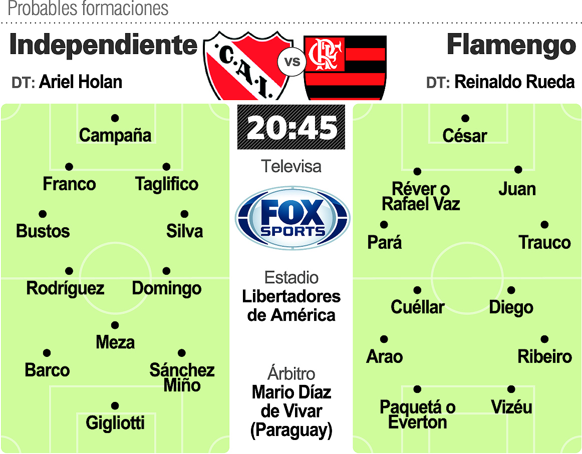 Independiente recibirá hoy a Flamengo, de Brasil (20.45 por Fox Sports), por la primera final de la Copa Sudamericana que reeditará un duelo entre dos equipos históricos del continente.