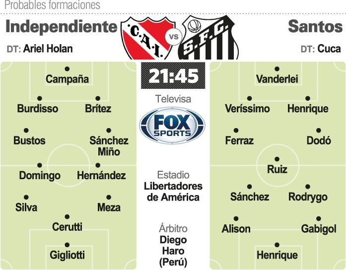 El próximo martes, desde las 19.30 horas en el estadio Pacaembú, se disputará la revancha de los octavos de final entre Santos e Independiente. En la serie, al igual que hasta semifinales, el gol de visitante cuenta como "doble".