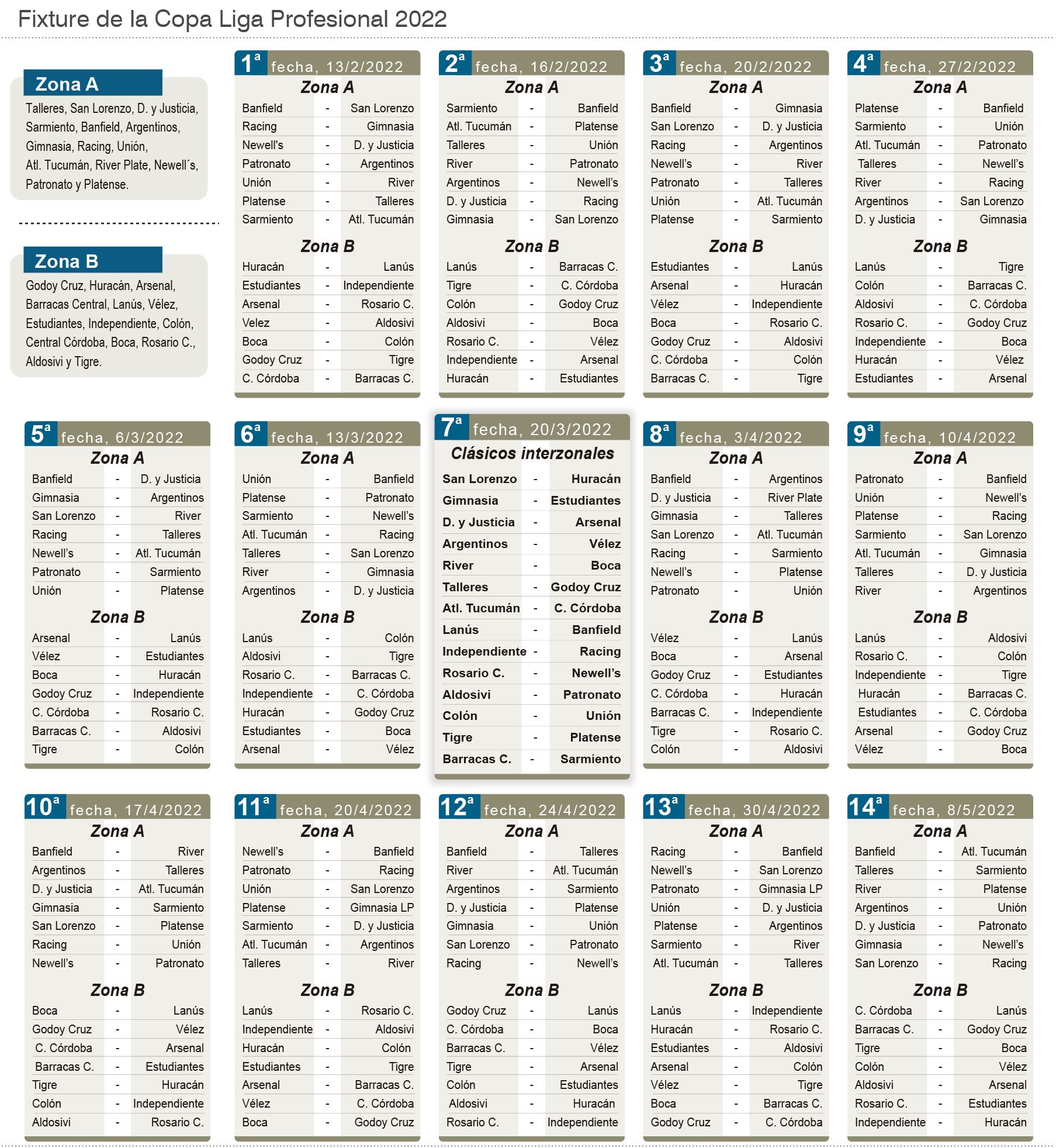 En cambio, el domingo 20 de marzo, por la séptima fecha, está prevista la realización del superclásico entre River Plate-Boca Juniors, en el estadio Monumental de Núñez, en la denominada jornada de Interzonales.