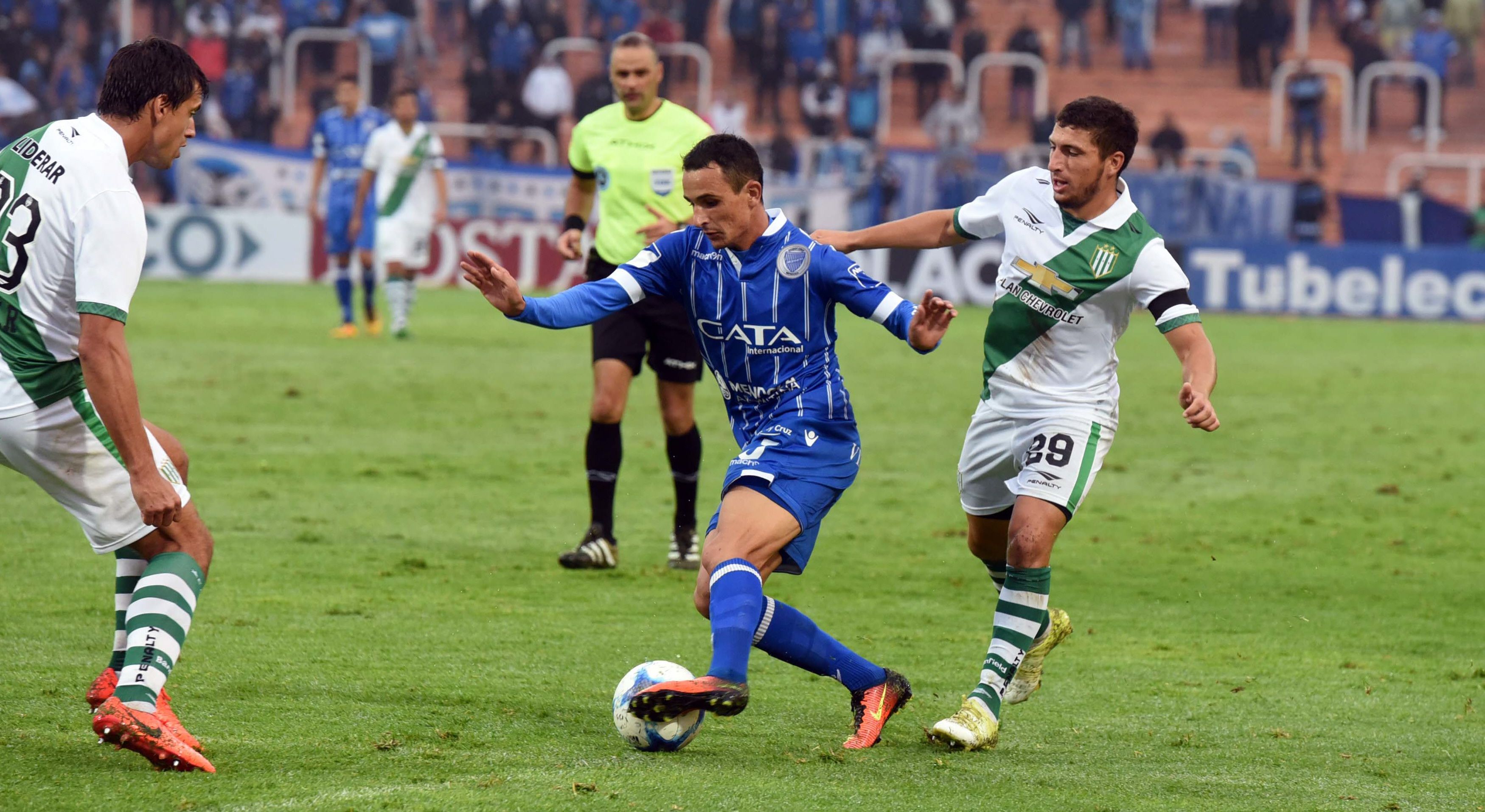 Godoy Cruz venció a Banfield por 3 a 1, aunque el árbitro cobró un penal inexistente.