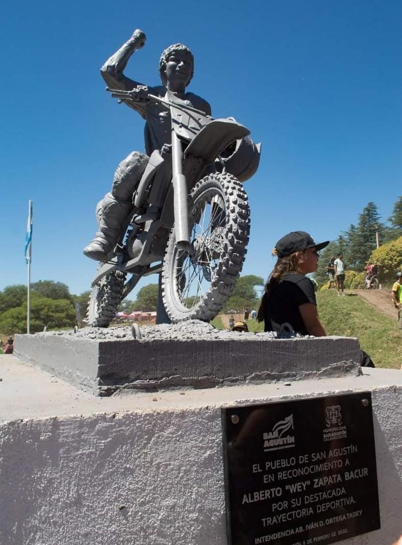 La familia viajó el pasado 7 de febrero para presenciar la inauguración de la escultura de Zapata en la plaza principal de San Agustín, Córdoba, ciudad donde falleció el piloto sanjuanino el 4 de abril del 2021 cuando sufrió una caída mientras competía.La escultura, está hecha en tamaño real del piloto que fue realizada por el artista Pablo Díaz, un escultor de Alta Gracia, amante del motocross, que quiso homenajear al sanjuanino porque sintió que la historia del Wey lo “toca muy de cerca”. Ese día estuvieron los médicos que atendieron al jóven sanjuanino el día de la tragedia, la gente de la organización de la Copa San Agustín e impulsores de este homenaje; Mario Medina por la Federación Cordobesa y Leonel Banner como responsable del Campeonato Cordobés de Motocross.