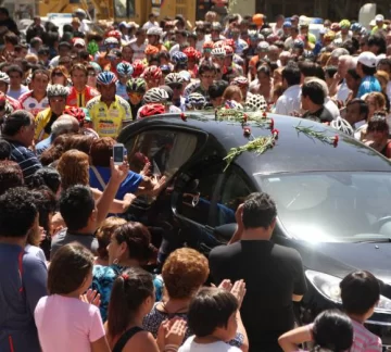 Conmoción. Tristeza. Dolor. Esas fueron postales que se vivieron. Así, el pueblo sanjuanino despidió a uno de sus ídolos populares, uno de los más ganadores en los últimos años y que supo ganarse el corazón de la gente con su carisma tanto arriba como abajo de la bicicleta. La despedida fue una ‘carrera’ que contó con la presencia con muchos de los que celebraron sus victorias. El vicegobernador, Sergio Uñac; el intendente de Rawson, Juan Carlos Gioja; el director de Deportes Gustavo Álvarez; el subsecretario de Deportes, Juan José Chica; el presidente de la FACPyR, Gabriel Curuchet, entre otros, se dieron cita en una caravana que fue más que especial.