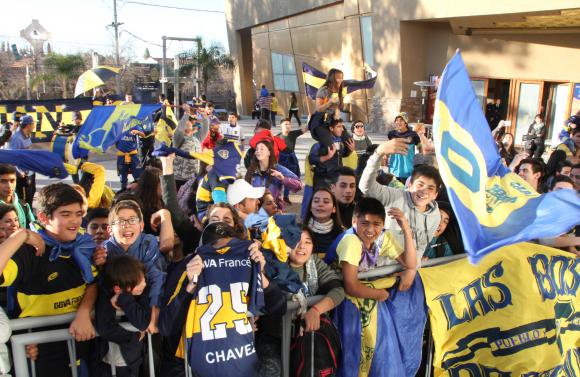 Familias enteras, como la del matrimonio de Juan Riveros y Teresa Flores junto a su hija Carina y sus nietos Guadalupe y Juan Ignacio; en grupos, como las siempre presentes “Bosteritas de San Juan” o integrantes de las peñas y agrupaciones xeneizes locales, todos se dieron cita para darle la bienvenida al club de sus amores.