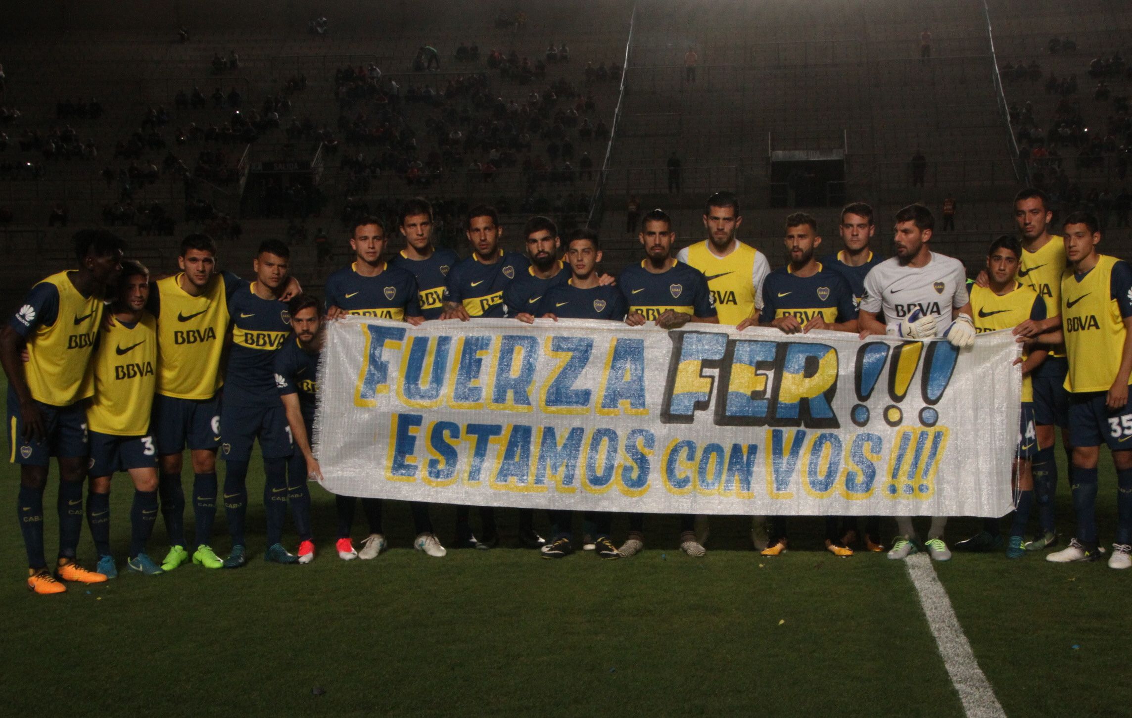 Cuando el equipo de Boca posó para los fotógrafos antes que comienzo del partido, los jugadores lo hicieron con una bandera en la que decía "Fuerza Fer, estamos con vos!!!", en claro apoyo a su compañero Fernando Gago, quien se rompió los ligamentos en el partido de Eliminatorias entre Argentina y Perú. El gesto fue aplaudido por todo el estadio.
