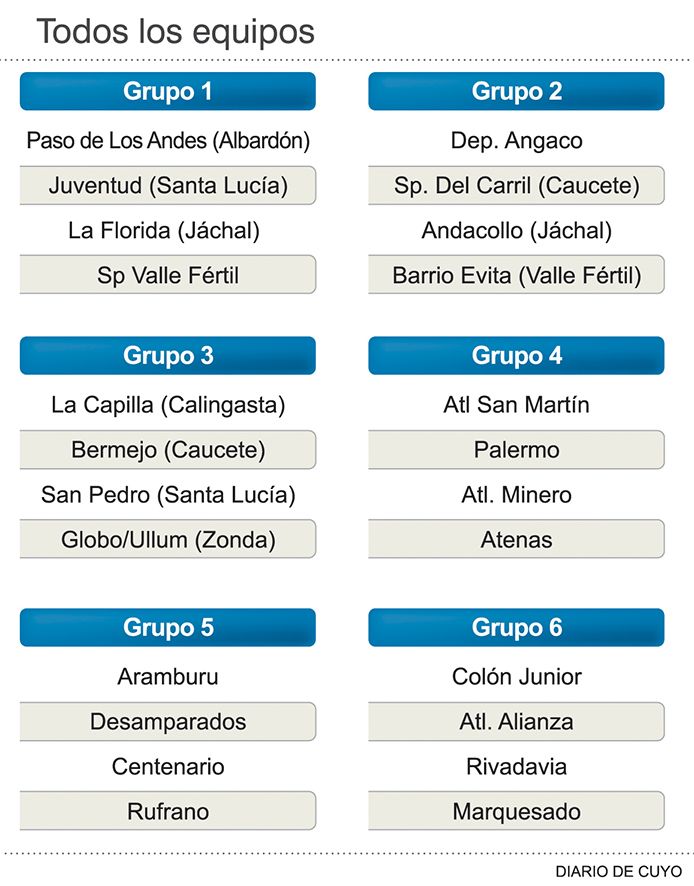 En la Zona Interior estarán presentes por Albardón, Paso de Los Andes y Deportivo Angaco. Por Jáchal, Argentinos de La Florida y Andacollo, mientras que desde Valle Fértil estarán Sportivo Valle Fértil y Barrio Evita. Desde Santa Lucía, Juventud y San Pedro serán sus representantes y Calingasta tendrá a La Capilla. Caucete será representado por Sportivo Del Carril y Bermejo, mientras que desde Ullum-Zonda, El Globo será su equipo. Por la Zona Capital, estarán todos los mejores incluyendo los ascendidos Atlético Minero y Rufrano. Además, los legendarios San Martín, Palermo, Desamparados, Atlético Alianza, Colón Junior, Aramburu, además de Atenas Pocito, Marquesado, Centenario y Rivadavia. Una edición histórica con participación equilibrada para todos, sabiendo que jugar la Copa es una fiesta.
