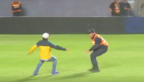 De inmediato, un policía intentó detenerlo, pero fue en vano. A la persecución se sumó otro efectivo, pero las gambetas del pibe hacían delirar a los hinchas y de las tribunas ya bajaba el ‘ole’. Después de varios intentos, varios uniformados lograron aprehenderlo. En total, fueron 8 los policías que llegaron para atrapar al hincha…