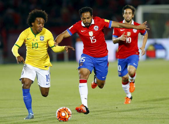 El seleccionado chileno de fútbol, dirigido por el argentino Jorge Sampaoli, estrenó esta noche oficialmente su título de campeón de América con un triunfo 2-0 frente a Brasil, en Santiago, por la primera fecha de las Eliminatorias Sudamericanas al Mundial de Rusia 2018.
