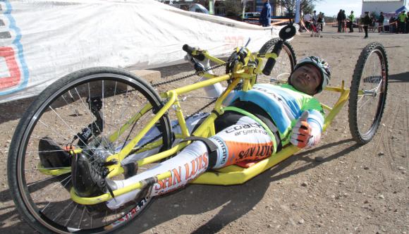 Su historia de vida conmueve a cualquiera. Ayer, él junto a los otros deportistas que le dieron vida a la categoría de “ciclismo adaptado”, se robaron todos los aplausos. Pero su caso es más que especial. Se trata de Sergio Barrera, un ciclista que llegó desde San Luis, y pudo completar el circuito en su bicicleta, en la que pedalea con las manos, porque sus piernas no le responden. Es que hace 10 años atrás, el oriundo de Villa Mercedes, tuvo un accidente cayendo de un techo causando la rotura de la primera, tercera y cuarta vértebra versal provocándole una paraplejía espasmódica que lo dejó inmovilizado de la cintura para abajo. Fue tanto el amor que siente por el ciclismo, que se dedicó a participar en carreras de ciclismo de mano y así se consagró Campeón Argentino en 2011 y 2012. Pero eso no es todo. El bicampeón continuó recorriendo las rutas del país y en marzo de este año cuando participaba de una carrera de relevos que recorrió el país durante tres meses, una ruta de San Luis le tenía preparada otra mala jugada. Un camión lo atropelló junto a su acompañante, Roberto Leites, quien murió, y dejando a Barrera por 5 meses inactivo. “Esta es la primera carrera para mí después del último accidente. Un nuevo desafío para mí así que llegué muy entusiasmado por ser también mi primera carrera de MTB”, contó. El hombre de 43 años, prometió además seguir haciéndole frente a la vida practicando lo que más ama. “Cuando se me terminen las competencias me esperan las travesías. Seguramente iré por Salta, Ushuaia o quizás cruce la Cordillera por Malargüe. El ciclismo es lo que me ayuda a dormir, a salir de los problemas. La idea es no quedarse sin desafíos”.