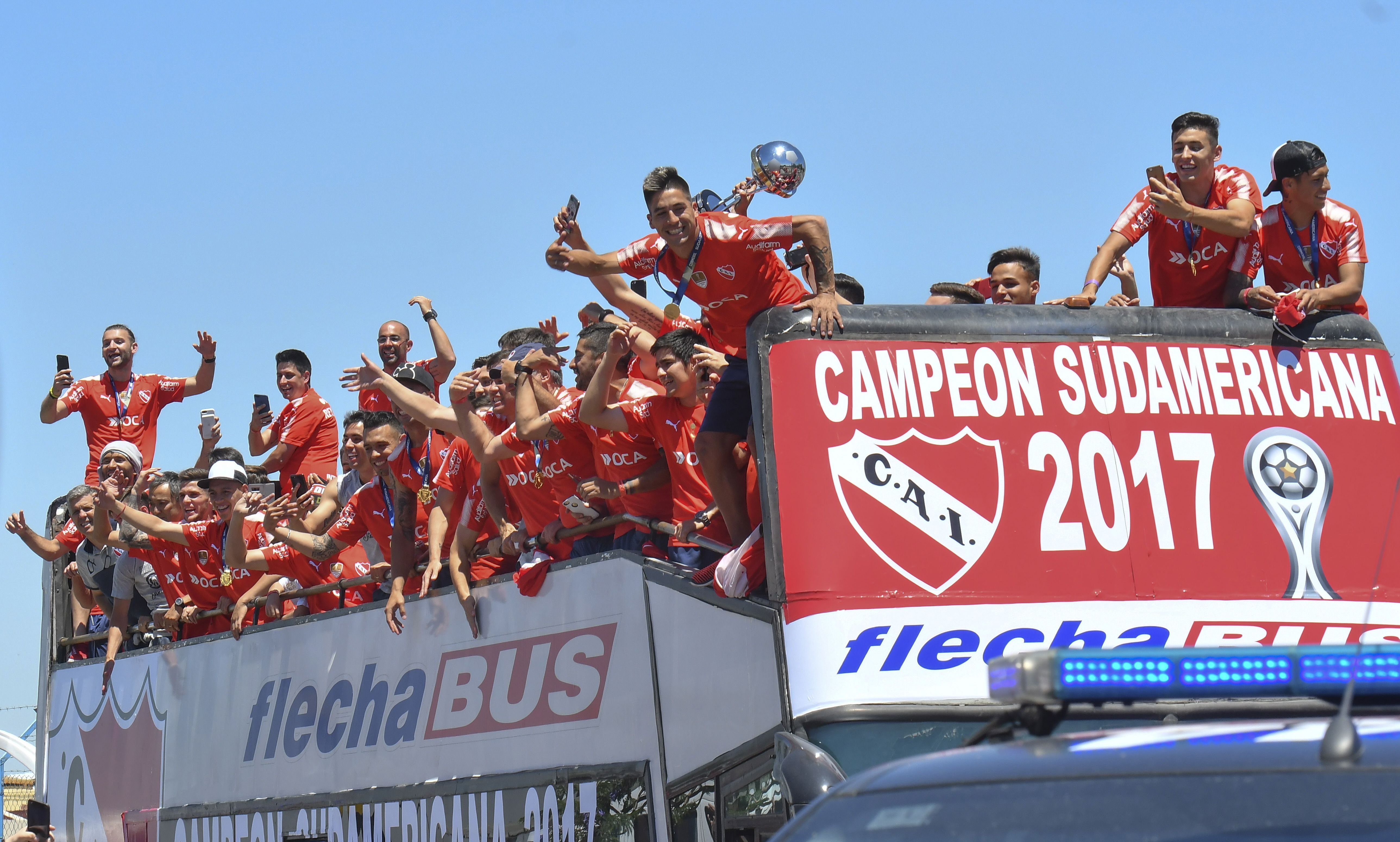 El plantel de Independiente volvió ayer al país y celebró el título de la Copa Sudamericana obtenido en Brasil con una gran caravana que finalizó con la fiesta de sus hinchas en el estadio Libertadores de América.