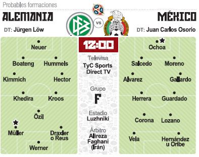El tetracampeón mundial Alemania, uno de los máximos favoritos para retener el trofeo logrado en Brasil 2014 cuando venció en la final a la Argentina, debutará hoy en la Copa del Mundo de Rusia 2018 ante México, en un encuentro por el Grupo F.