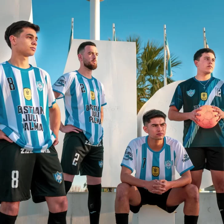 No son ni Messi, ni De Paul, ni Di María. Son los jugadores del equipo de futsal Sportivo 25 de Mayo, recientemente consagrados campeones del certamen de la Liga Caucetera-Sanmartiniana, que tuvieron la presentación de camisetas al mejor estilo de la Selección argentina de fútbol.