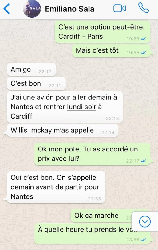 Emiliano Sala: "Si, está bien. Hablamos mañana antes de partir para Nantes".