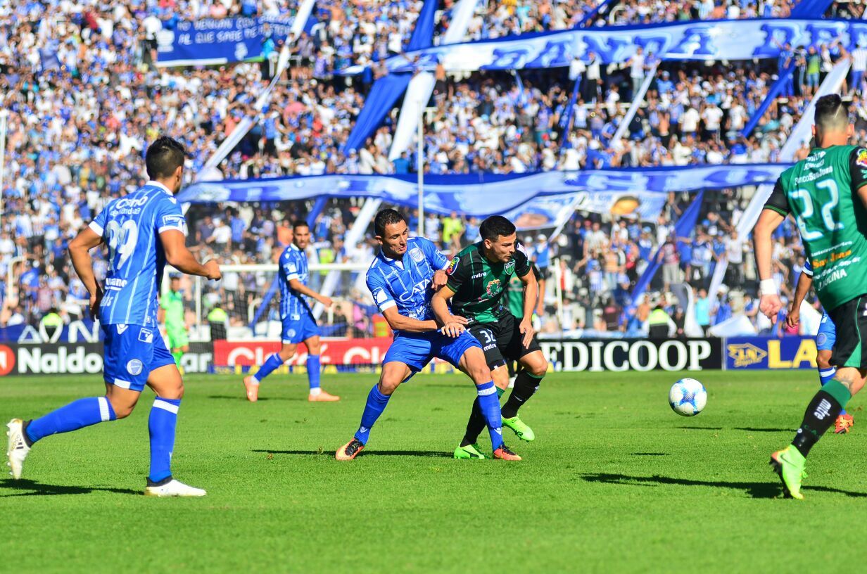 A los 42’ Emiliano Agüero tuvo la mejor chance sanjuanina, cuando capturó una pelota en el borde del área grande y su potente derechazo estuvo a milímetros de abrir el marcador para el equipo de Pipo. Aunque en la acción inmediata, Correa respondió para Godoy Cruz con un disparo que Corti controló con la mirada. Fue así que el final del parcial inicial se dio de ida y vuelta, para ser el momento más atractivo y con verdadera intensión de clásico cuyano.