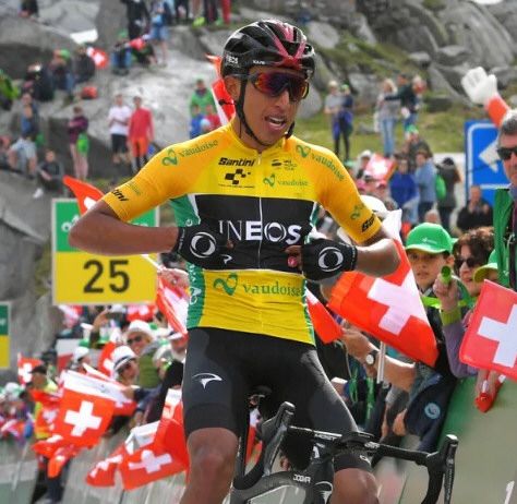 El ciclista colombiano Egan Bernal (Inneos) (ganador de la clasificación de jóvenes de la Vuelta a San Juan 2018) ganó ayer, con 22 años, el Tour de Suiza.