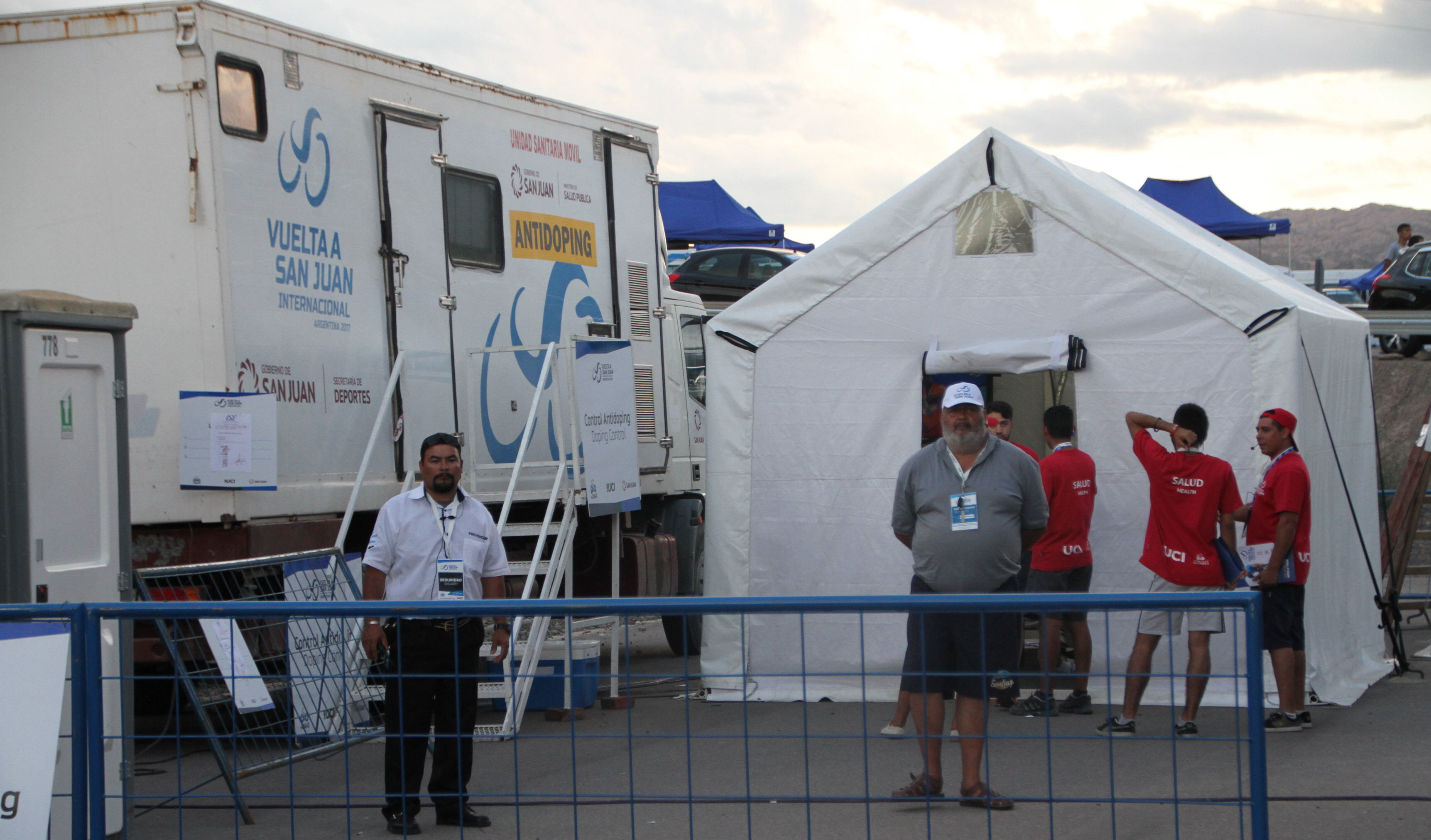 Son cerca de una quincena los ciclistas citados por día para la prueba, que puede ser de orina o sangre . Todo depende del oficial de doping que mandó la UCI para esta competencia, que en esta ocasión es un español. Además, la organización cuenta con un oficial de ONAD (Organización Nacional de Anti Dopaje) y también “chaperones”, que son las personas que ofician de acompañantes de los deportistas hasta el lugar de la prueba.