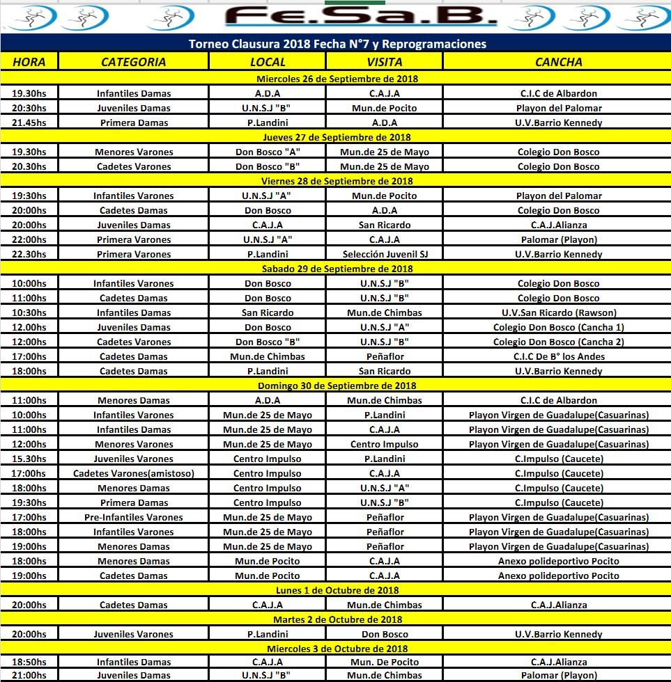 El cronograma de la séptima fecha del handball local