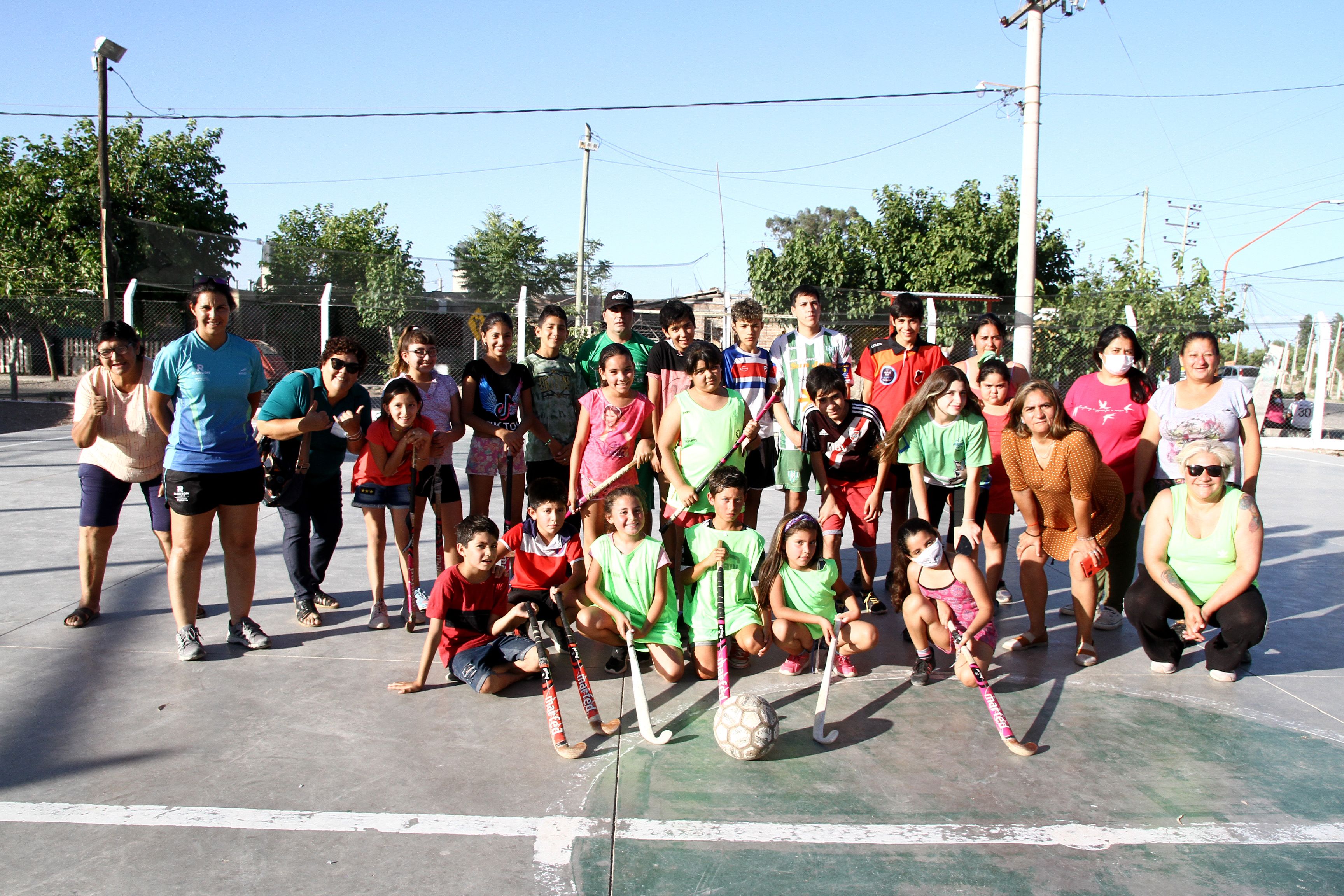 Allí practican fútbol, masculino y femenino, hockey sobre pista mixto y vóleibol mixto. Cuentan con el respaldo del municipio que les brinda los sticks, las bochas y las pelotas, aunque también la Comisión que integran unas 15 mujeres del barrio, reúnen los fondos y van comprando como pueden más material. "Hace poco compramos una pelota de voley y ahora vamos por la red", comentó Juárez.