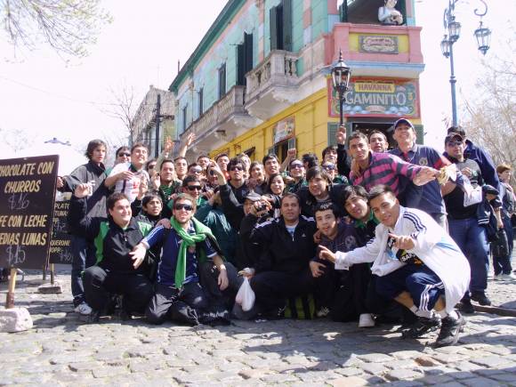Recorrieron Caminito de punta a punta, se sacaron fotos y hasta se animaron a cantar el +Dale verde, dale verde+ en el centro de este lugar ante la requisitoria de DIARIO DE CUYO. Nadie, pero absolutamente nadie, les dijo nada, y fueron tratados con total respeto en la previa al partido.