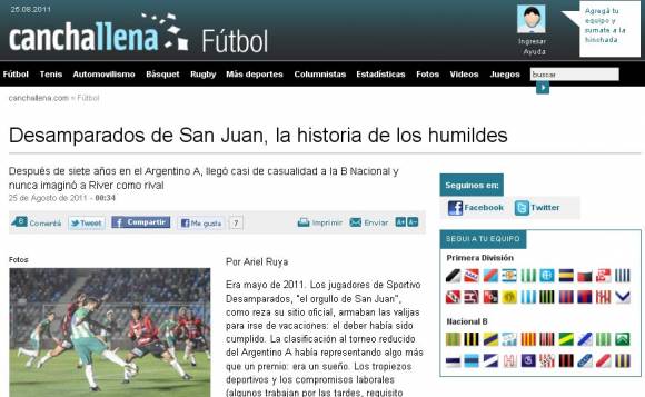 Bajo el título "Desamparados de San Juan, la historia de los humildes", La Nación relata el duro camino que transitó el conjunto Víbora desde el Argentino A hasta enfrentarse con el Millonario.
