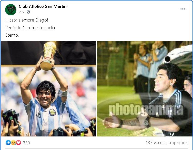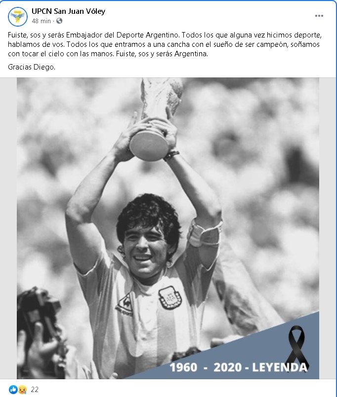 Diferentes personalidades sanjuaninas del deporte postearon en sus redes sentidos mensajes sobre la muerte de Diego Armando Maradona. Mirá: