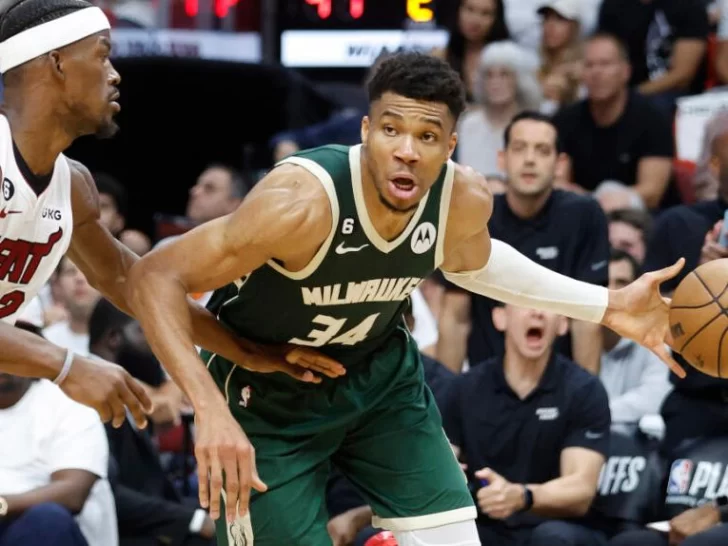 Antetokounmpo, finalista al premio MVP de la temporada, sumó 38 puntos y 20 rebotes pero solo convirtió 10 de 23 tiros libres y su actuación se vio opacada por los 42 puntos de Jimmy Butler, la estrella de Miami.
