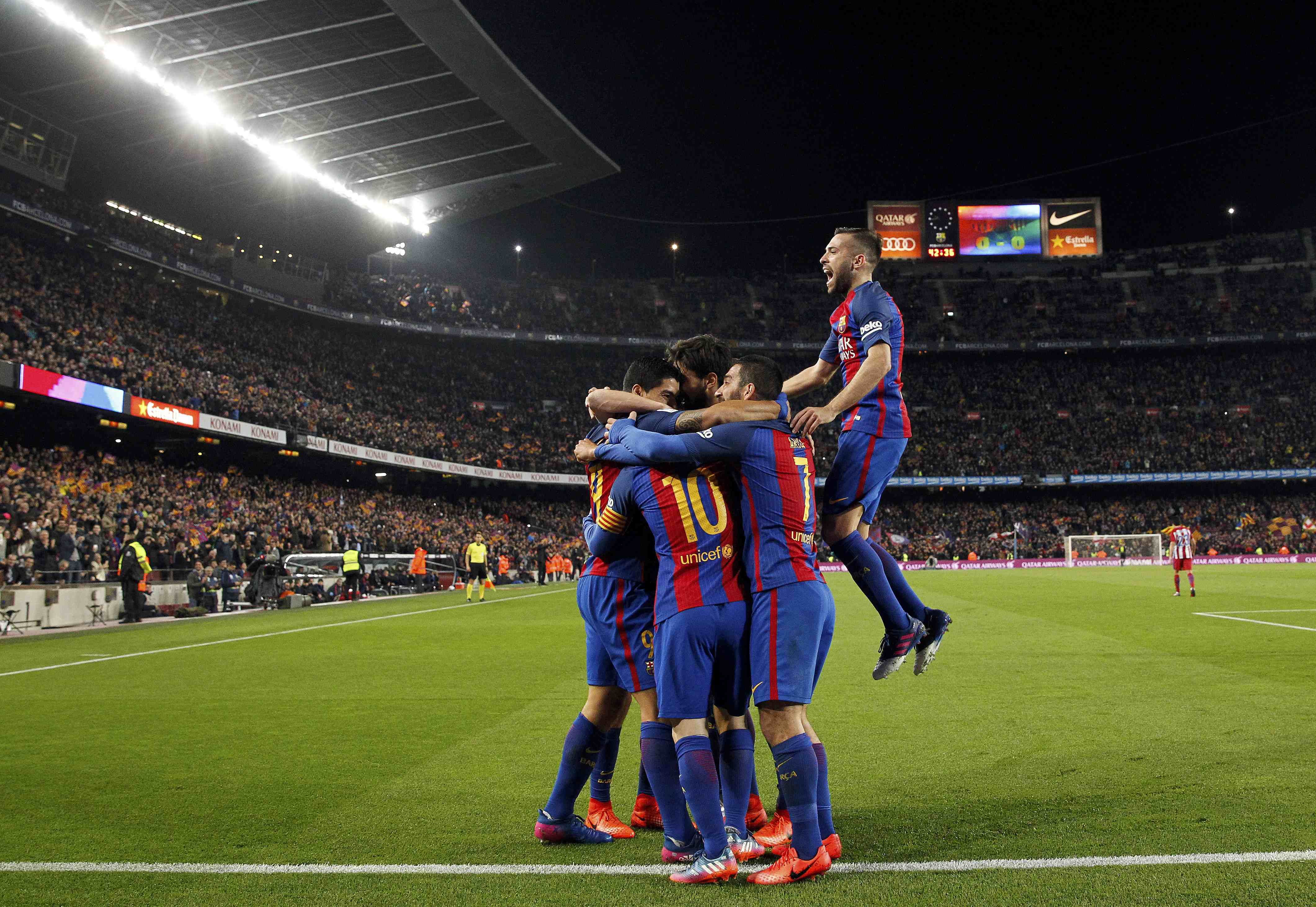 El campeón defensor, que había ganado 2-1 en la ida, abrió  el marcador por intermedio de Suárez a los 43 minutos. El  uruguayo aprovechó un rebote del arquero tras una gran jugada  individual de Lionel Messi.