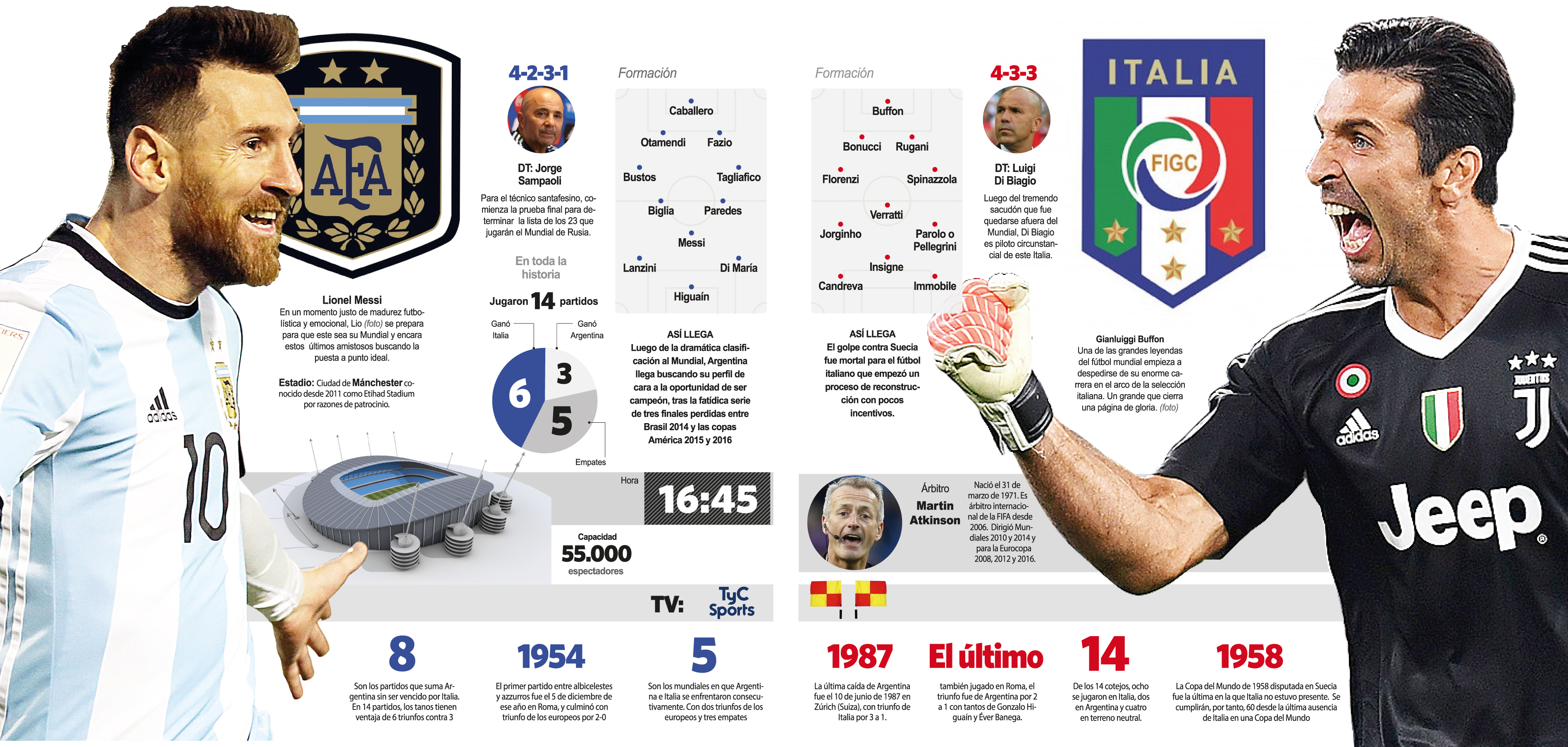 El encuentro se jugará a partir de las 16.45 (hora argentina) en el estadio Etihad, propiedad de Manchester City, con el arbitraje del inglés Martin Atkinson y transmisión de la señal de cable TyC Sports.