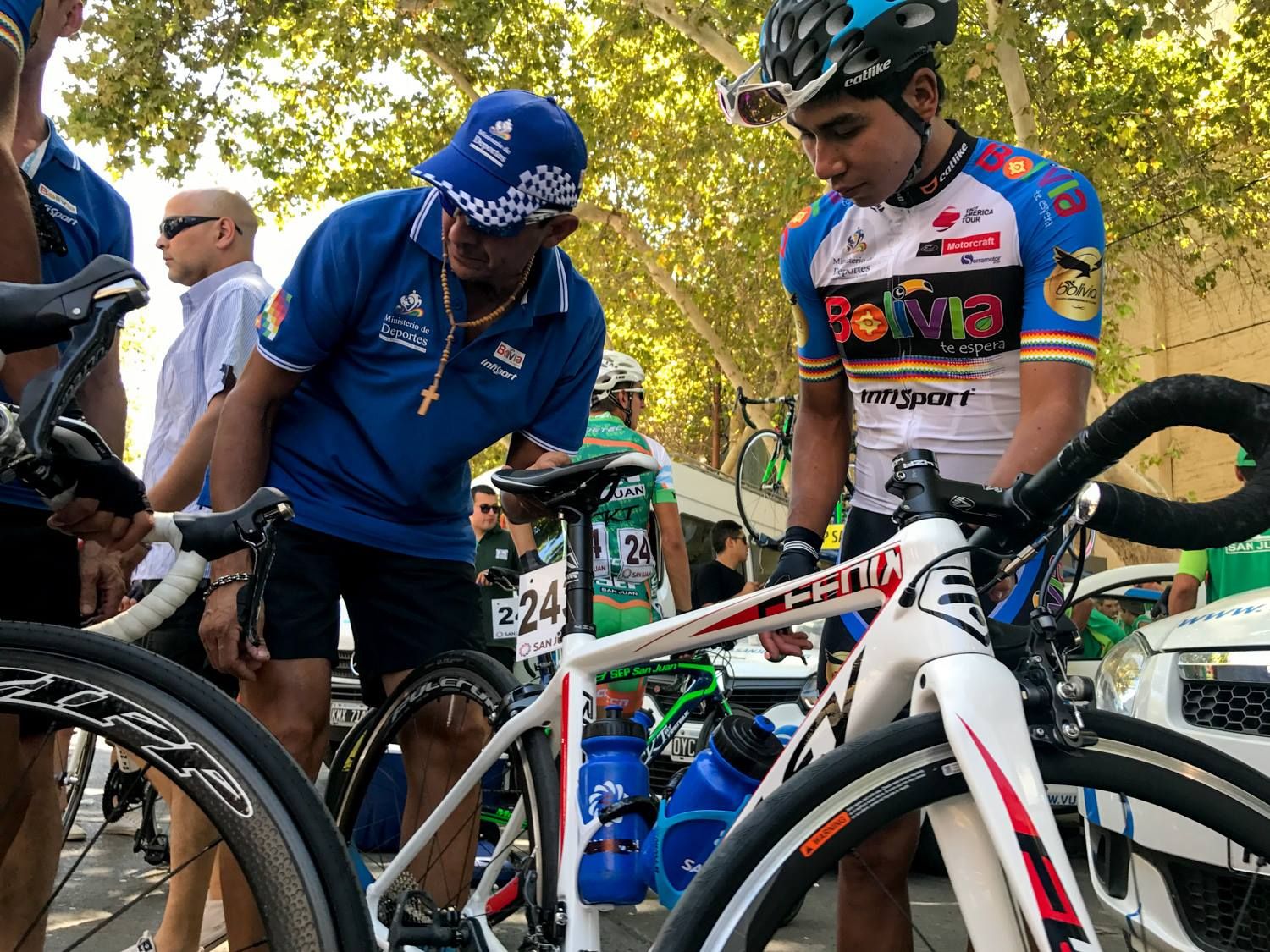 Oscar Ramírez es un ciclista sanjuanino que se especializa en el mantenimiento y reparación de bicicletas. En esta oportunidad, el equipo de Bolivia puso en él la confianza de armar y mantener las bicicletas de todo el grupo.