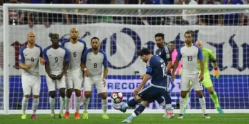 El crack de la Selección anotó el segundo tanto ante Estados Unidos con un tiro libre perfecto al ángulo. Un video muestra el momento desde diferente lugares del estadio. Video.