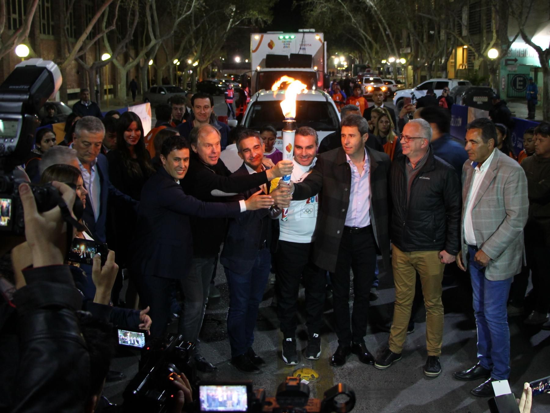 Pasadas las 20, con la presencia del gobernador Sergio Uñac y el hockista Roberto Roldán comenzó el histórico camino de la llama olímpica. Luego fue el turno de Julián Suriaci y fue relavado por la ciclista Maribel Aguirre. Posteriormente, le tocó a Juan Cruz Díaz el vecino sanjuanino elegido por la Ciudad de Buenos Aires, quien le dio la llama a la boxeadora Leonela Yúdica. Facundo Cordero fue el siguiente relevista y le entregó la antorcha a atleta Viviana Chávez, quien se la vio con lágrimas en los ojos al portar el emblema de los Juegos Olímpicos.