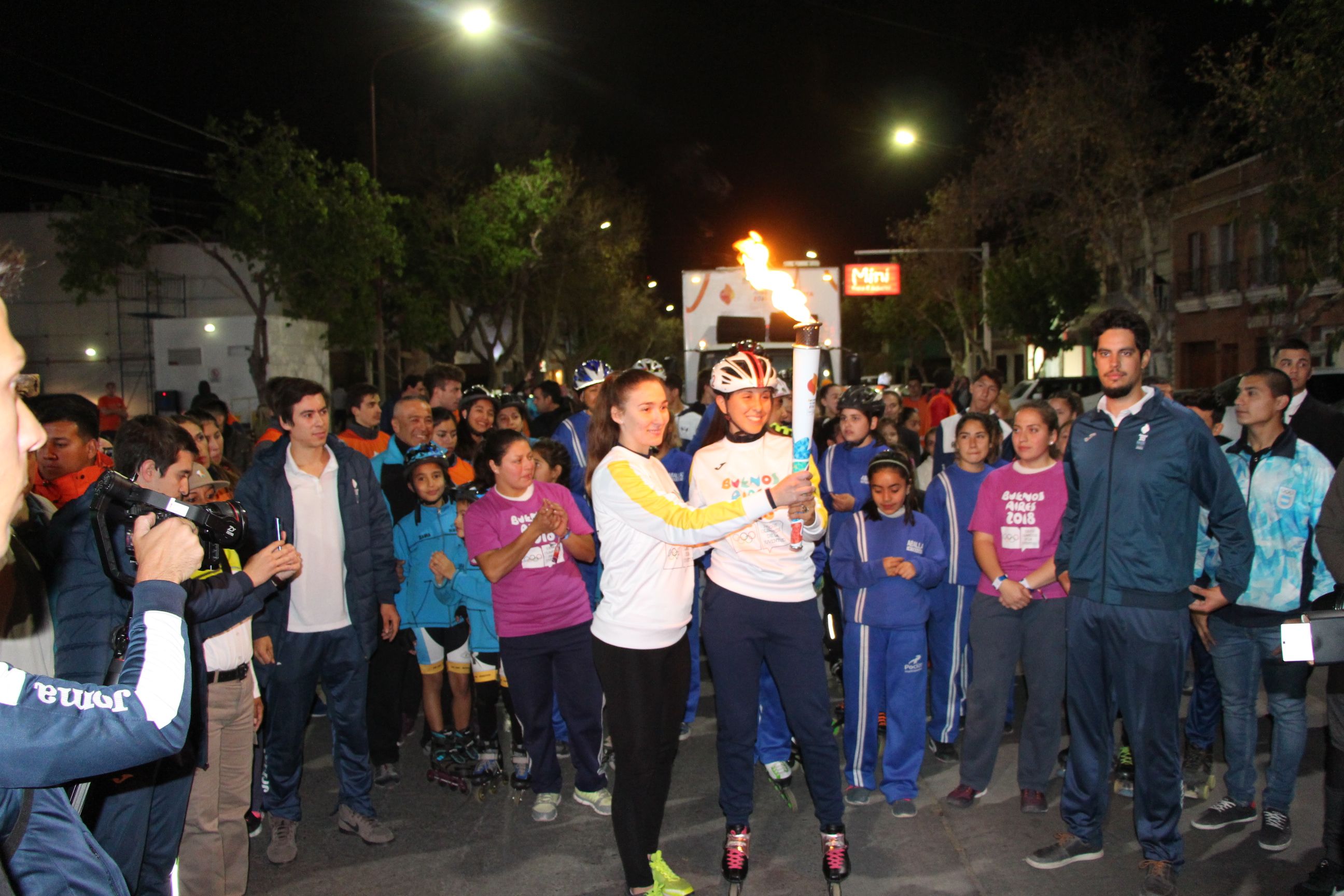 El recorrido continuó con el pedalero Duilio Ramos y con los patines calzados, Fernanda Illanes hizo su paso acompañada por un grupo de patinadores. La joven sanjuanina que correrá en los Juegos Olímpicos de la Juventud le dio la llama a la voleibolista Paula Diloreto y el último fue el triatlonista Gonzálo Tellechea, quien tuvo el honor de encender el pebetero que se encontraba dispuesto en el ingreso al Teatro del Bicentenario.
