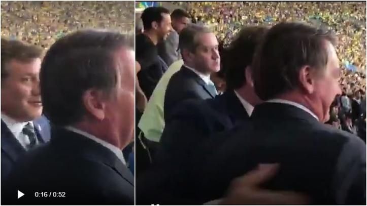 El presidente de Brasil, Jair Bolsonaro, y el titular de la Conmebol, Alejandro Domínguez, miraron la gran final de la Copa América 2019 juntos en el palco oficial. Tras el 1-0 de Everton, ambos compartieron un abrazo para celebrar.