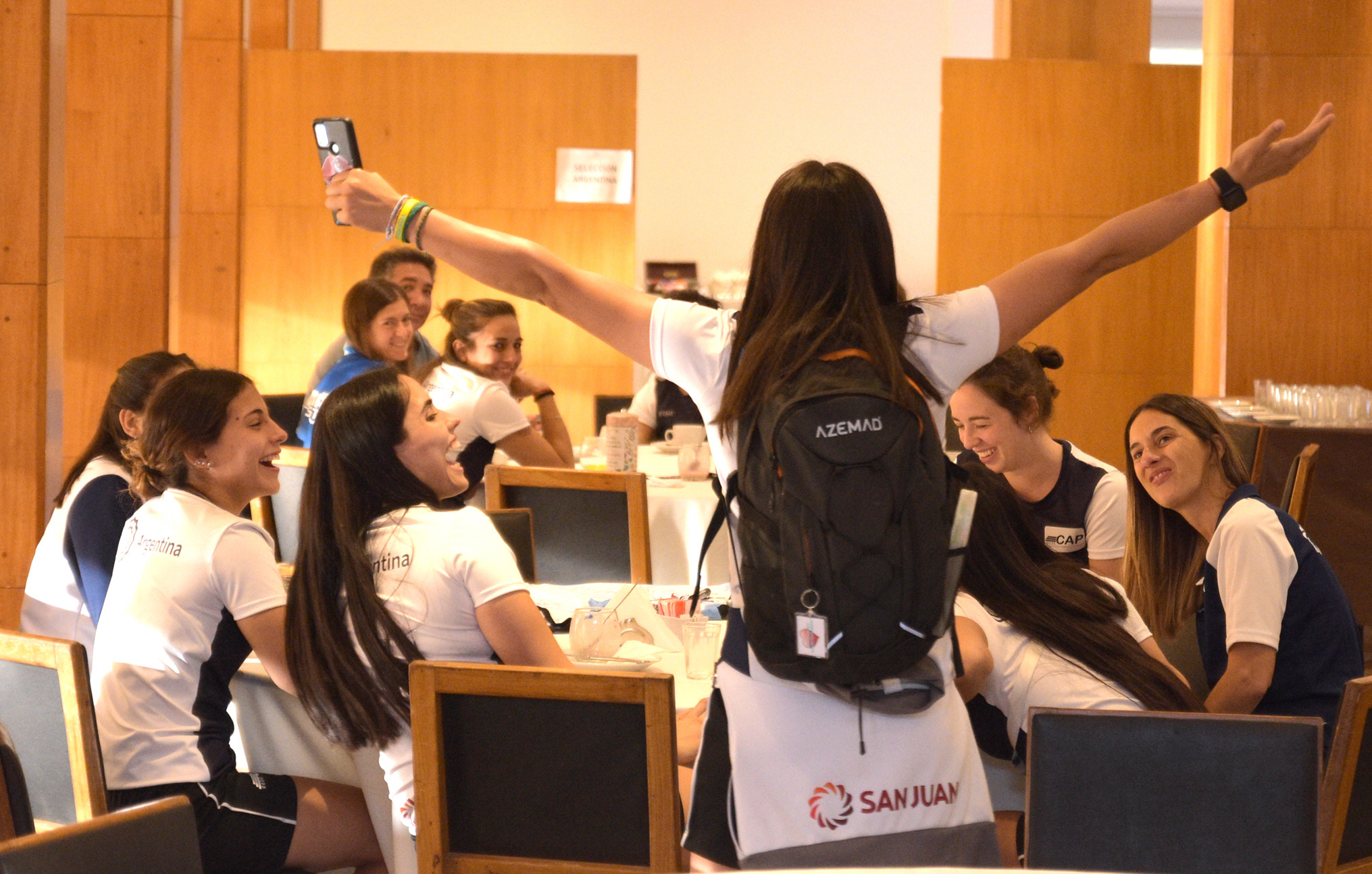 Cuando en el Cantoni se habían apagado casi todas las luces y atrás habían quedado los gritos y las lágrimas tras la conquista mundial, los únicos sonidos que se escuchaban eran de un parlante en el vestuario de Las Águilas. El equipo dejó el estadio cerca de la 1 de la mañana de ayer y la celebración continuó con una cena en el hotel, sin familiares ni allegados. Fue un festejo íntimo que buscó cerrar el ciclo del grupo, una última reunión a modo de despedida luego de un proceso largo que se coronó con el campeonato y que sirvió para dar cuenta, una vez más, de la unidad de un plantel que dejó mucho para poder dar una histórica vuelta olímpica en San Juan. Y ayer, al mediodía, algunas de las jugadoras almorzaron con los suyos y a la noche acompañaron a los varones en la final.