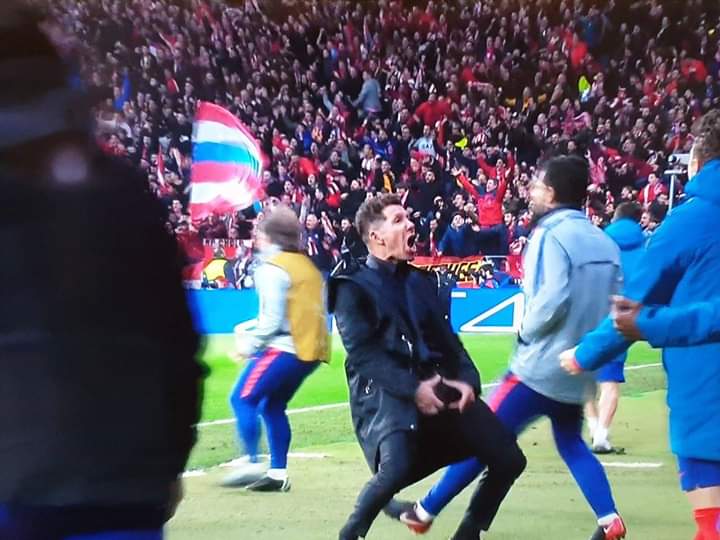 Diego Simeone explotó en el primer gol de su equipo ante la Juventus, en el duelo en que Atlético de Madrid se impuso por 2-0, por la ida de los octavos de final de la Champions League.