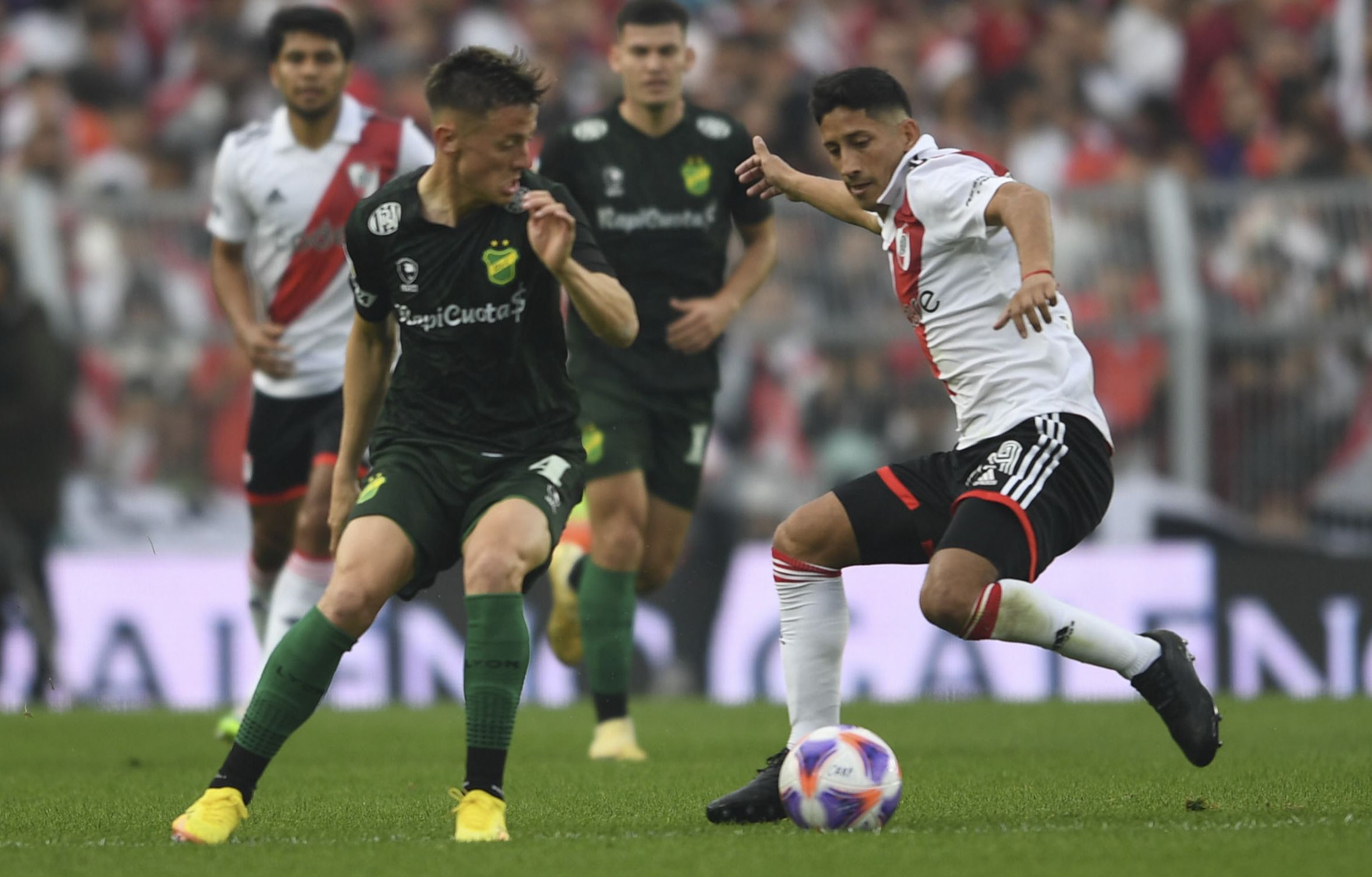El encuentro era intenso entre dos de los equipos que mejor juegan en el campeonato, con una ocasión para Defensa y Justicia a través de un remate de Nicolás Fernández (2m) que despejó Franco Armani y la gran tapada de Ezequiel Unsain ante Nicolás De La Cruz (12m).