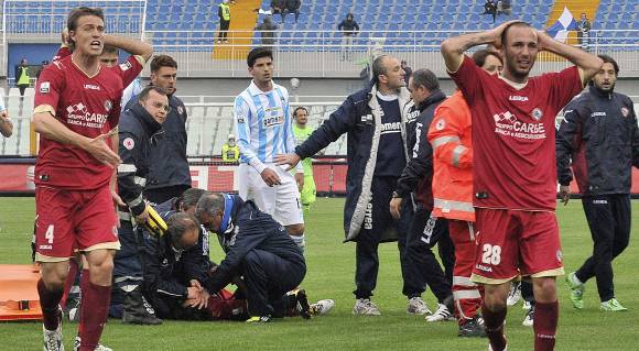 El jugador del Livorno, Piermario Morosini, falleció ayer en pleno partido, al sufrir un ataque al corazón mientras jugaba con su equipo un partido de la Serie B del fútbol de Italia frente al Pescara. El mediocampista, de 25 años, se desplomó sobre el campo de juego a los 31m del primer tiempo, cuando el marcador favorecía al Livorno por 2-0. Los médicos intentaron reanimar al infortunado futbolista en pleno césped, antes de que fuese derivado al hospital Santo Spirito, de Pescara. Sin embargo, las maniobras de resucitación no entregaron el resultado esperado y Morosini fue declarado muerto, ya en el centro asistencial.