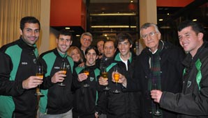 Jugadores, cuerpo técnico y gente del club de Concepción recibieron al mandatario en la cena de festejo realizada en el hotel Salta de Capital Federal, en donde se alojaban.