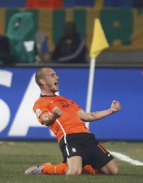 "Sabíamos que estábamos a tiempo de acceder a las semifinales y por eso en la parte final dejamos todo. Entramos a la cancha muy ofensivos y obtuvimos un rápido empate. Luego tuvimos el tiempo y el espacio que necesitábamos para hacer el segundo gol. No dudé en meter la cabeza. Fue mi primer gol de cabeza, pero pienso que no volverá a ocurrir". Sneijder, el dueño heroico de la clasificación.