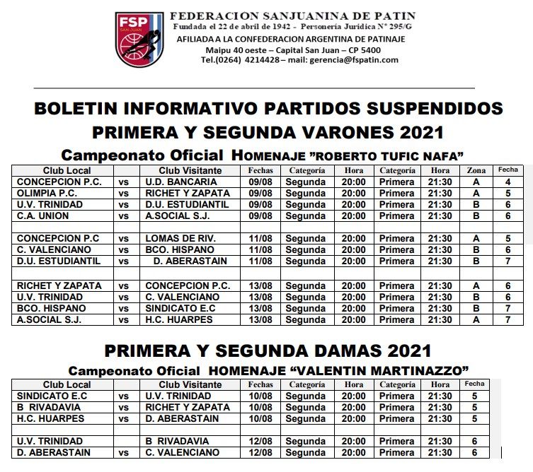 Este jueves, la Federación Sanjuanina de Patín informó que el próximo 9 de agosto será el regreso del hockey sobre patines en la provincia y explicó que los primeros encuentros en disputarse serán los pendientes.