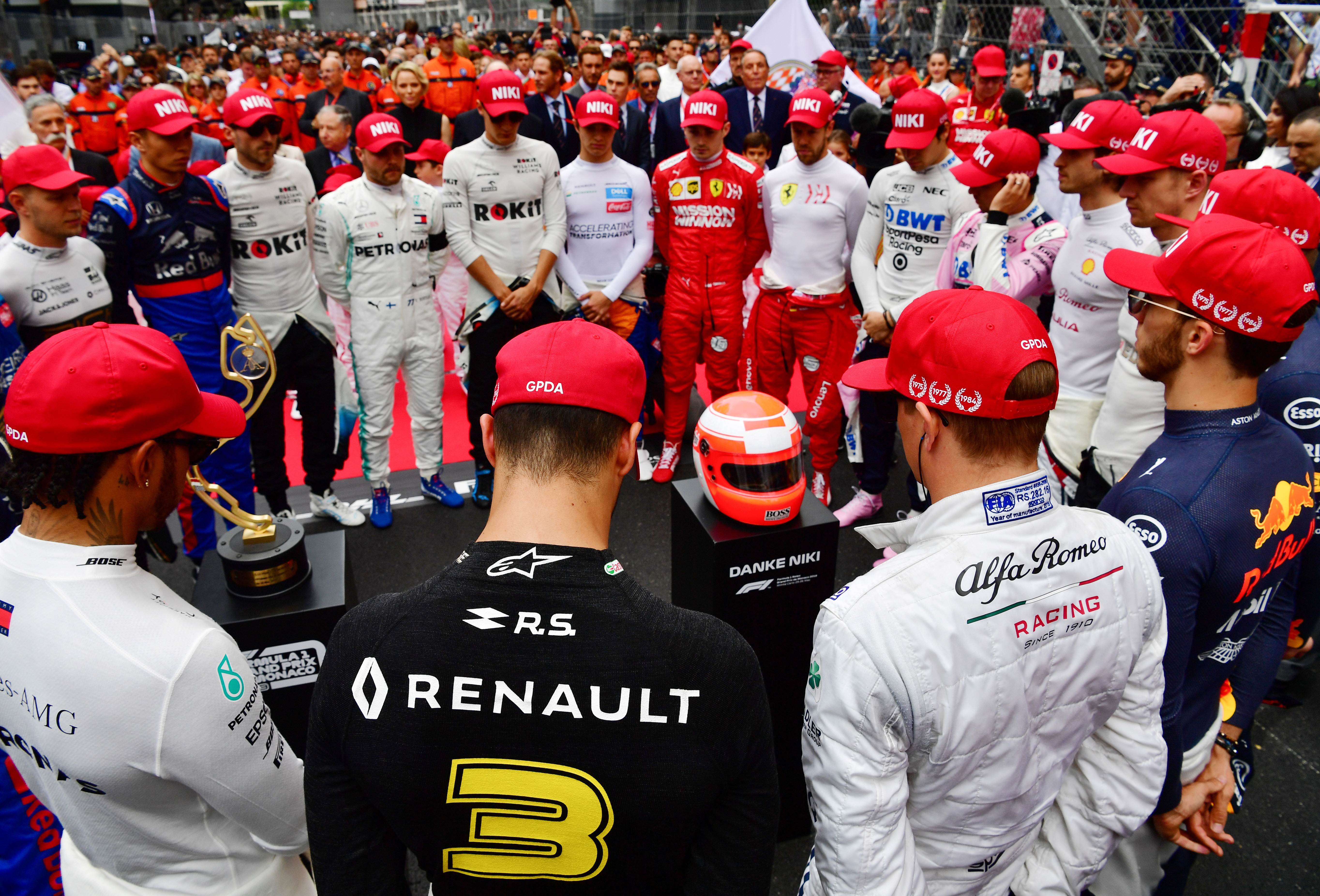 Los veinte pilotos que participaron de la carrera guardaron un minuto de silencio antes de la largada, mientras que su figura fue recordada con mensajes en los cascos y monoplazas; a la vez que todos los pilotos portaron su característica gorra roja, con su nombre y sus tres títulos mundiales, durante el desfile. A su vez, los yates de la costa junto al circuito hicieron sonar sus sirenas.